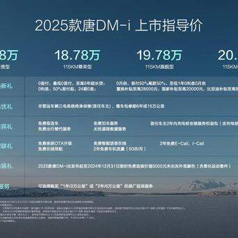 车盟快讯:10月25日,2025款比亚迪唐DM-i认真上市,共发布四款车型,售价区间为17.98-20.78万元。现鄙人订,还可享0首付或24期0息金融礼、三电终生质保、至高28000元置换补贴等六重购车礼遇,四肢改款车型,25款唐DM-i将搭载比亚迪第五代DM技艺,百公里亏电油耗仅为4.95L,满油满电概述续航高达1150km,新车还初次提供了云辇-C 智能车身终了系统,标配铝合金多连杆后悬、FSD 可变阻尼悬架。新增未央灰配色,以及可选黑化通顺套件,全新轮圈造型。三猛进化,超百项中枢标配欧洲杯体育,这台更安妥中国度庭的大七座SUV,你们可爱吗?#比亚迪唐DM-i#