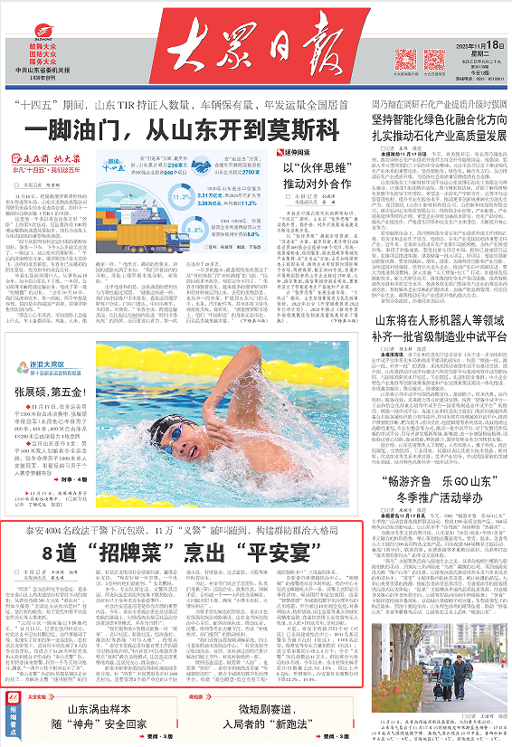 现时,泰安市所辖3755个村(社区)已一起建成综治中心;2841名下层警务力量下千里村(社区),1163名法官、检验官等专科力量包联村(社区);成立邻里联防小组3.8万个;全市“义警”军队畛域达11万东谈主,群防群治大面目初步酿成。本年以来,全市村级化解矛盾纠纷数目占比56.16%,同比飞腾8.72%;刑事案件、递次案件发案数永诀着落12.3%、10.8%。