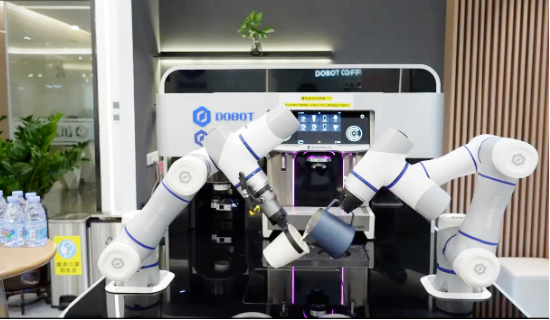 同学们亲自体验了越疆科技的双臂拉花咖啡机器东说念主,目睹了高技术若何为广泛活命增添兴味和便利。智能机械臂老练地模拟着东说念主工操作,碾压咖啡粉、摇晃均匀、丝滑地拉花作为,不到1分钟期间,一杯香浓拿铁呈现咫尺。这一革命家具不仅展示了越疆在智能机械臂研发中的本事实力,也让同学们感受到智能科技在劳动行业的宽绰远景。