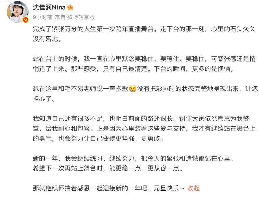 老父亲护男儿晚会已毕后不久,沈佳润赶忙发微博向毛不易说念歉,