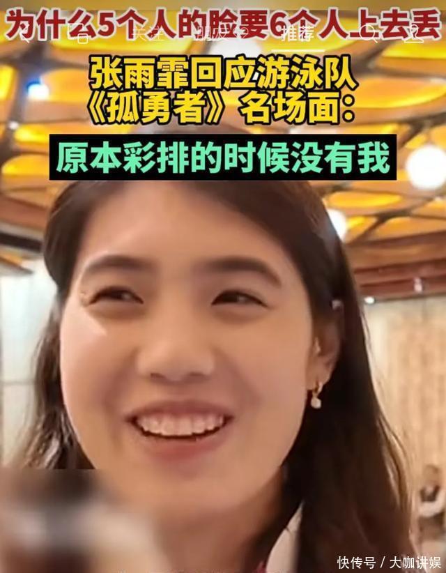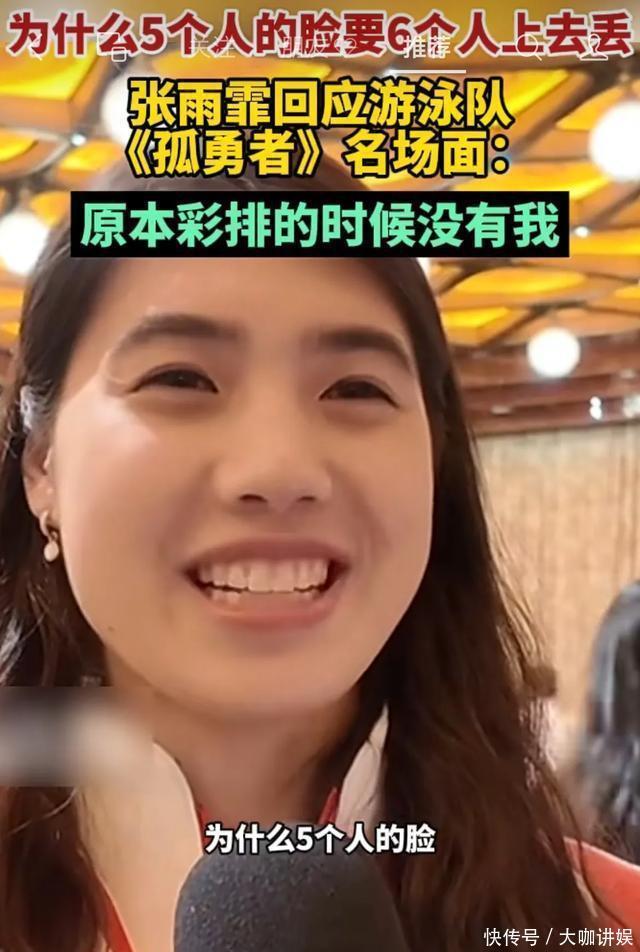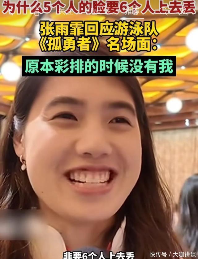张雨菲在采访中暗示,蓝本在彩排的技术,唯有5个男生,潘展乐、覃海洋、徐嘉余、孙佳俊,王长浩,莫得她,可是本体饰演的技术6个东谈主皆上去了,天然跑调,但现场痛恨卓越好,张雨菲还捉弄称5个东谈主的脸非要6个东谈主丢!哈哈哈,笑死了,这小姐特辉煌,笑起来也很顺眼!