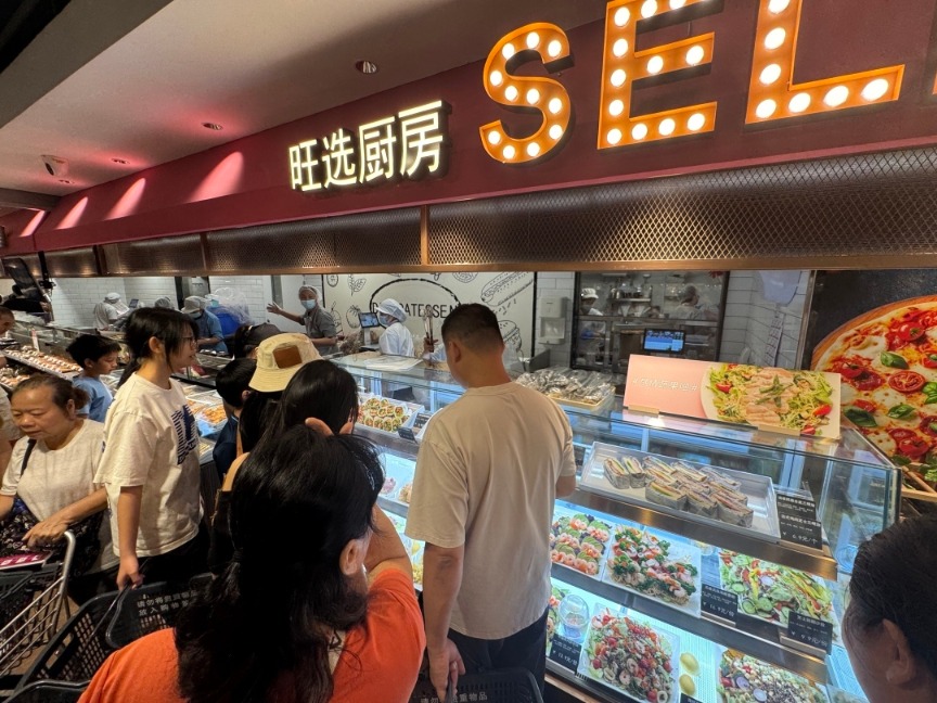 值得一提的是,永旺河汉城店商品上风相同相等越过:鲜花从云南基地冷链空运,蔬菜是云南峻岭泉水灌溉的绿色款,鲜鱼王人为当日崭新拿获的海鱼,冷链当日到店。针对都市打工东谈主,有丰富3R圣洁食物(以即食、即烹、即热为核豪情念,主打家庭式的方便快手菜)及韶关“斋府”菌菇冷冻品。还有粤式好意思食,如阿婆牛杂、飞哥飞饼、盐焗鸡(120天以上髯毛鸡),给与优质食材手工制作的现烤PIZZA,店内酒吧提供即买即饮和小杯试饮管事。