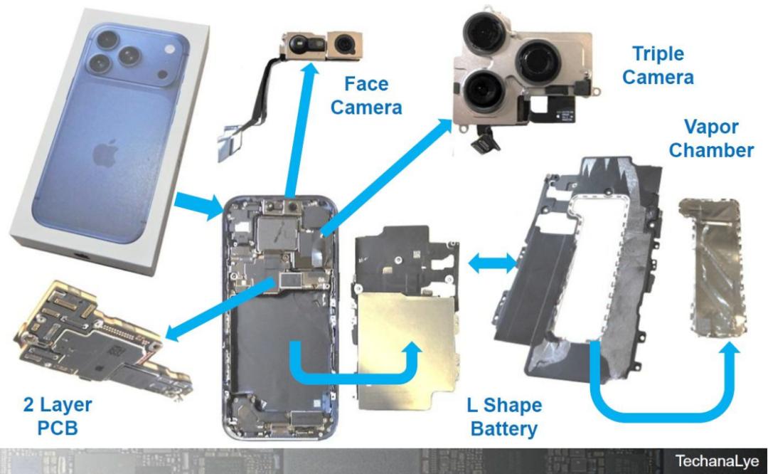 图 3:iPhone 17 Pro 拆解。开首:Techanalye 陈述