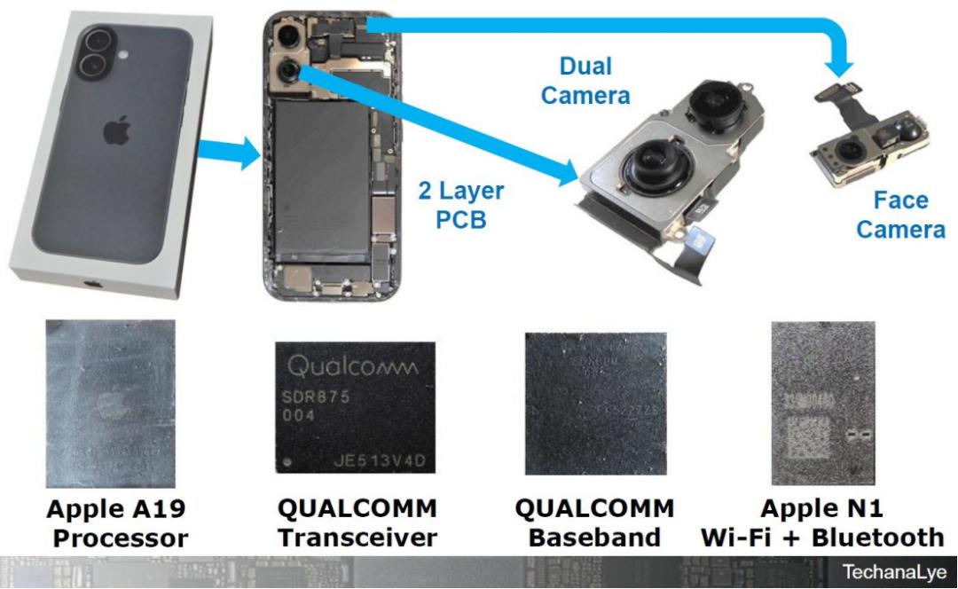 图 2:iPhone 17 Air 的主芯片由苹果制造。开首:Techanalye 陈述