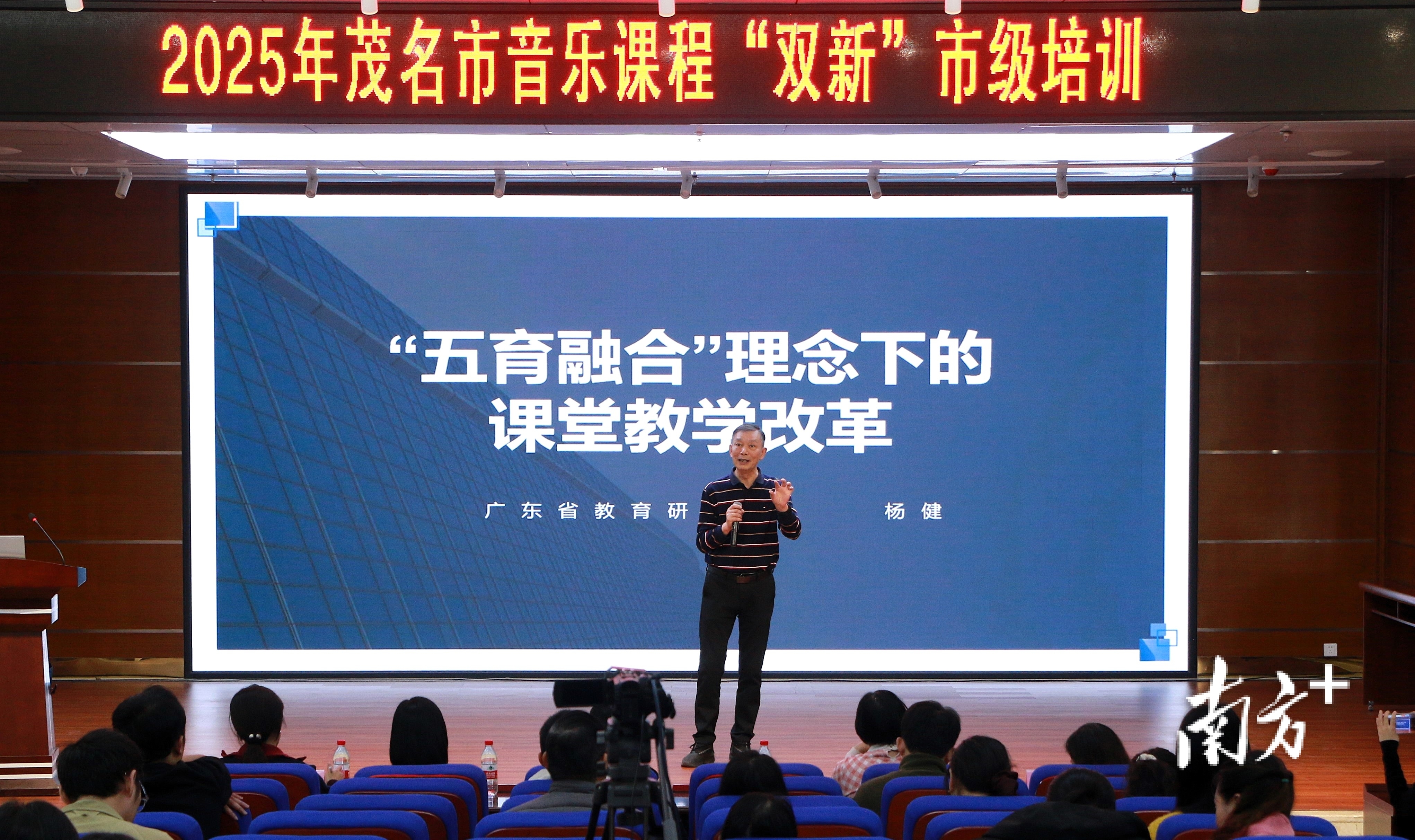 下昼培训聚焦实施。广东省造就有计划院音乐教研员、“五育调处”课堂教育矫正创建东谈主杨健带来的《“五育调处”理念下的课堂教育矫正》职责坊,让诚恳们切躯壳验怎样将好意思术、体裁、跳舞等元素融入音乐教育。分组创作能力,各区陶冶团队在半小时内编创出调处茂名原土文化的音乐短剧,现场笑声与掌声不停。