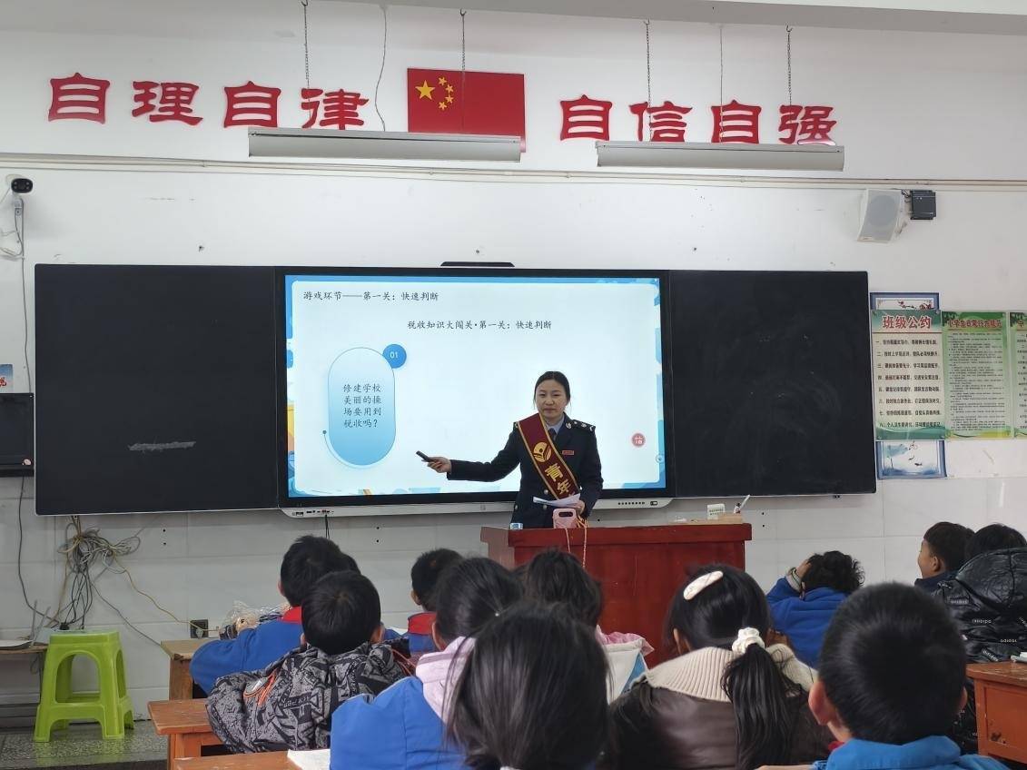 与此同期,六枝特区税务局走进岩脚镇第三小学,诓骗漫绘图板与普法视频,从“税”字结构讲起,阐释税收“取之于民、用之于民”的本色。税务干部吞并城市斥地、校园环境等实例,评释税收在民生与发展中的作用。